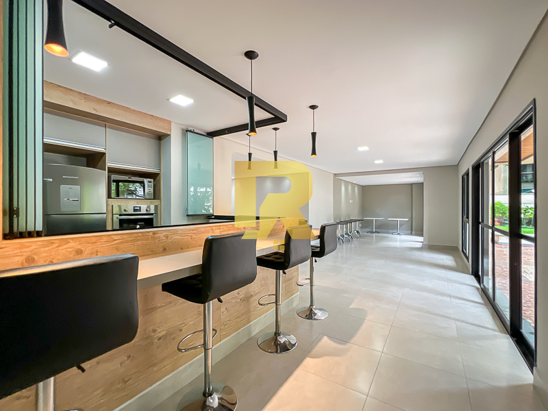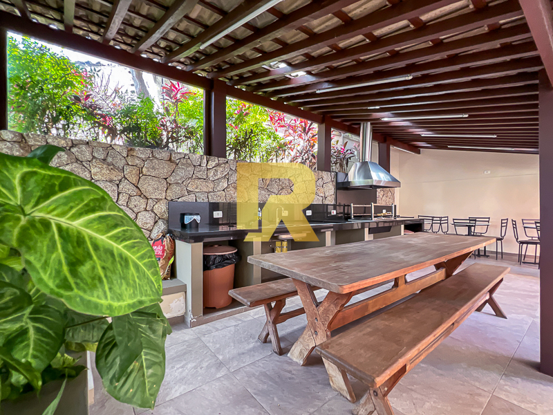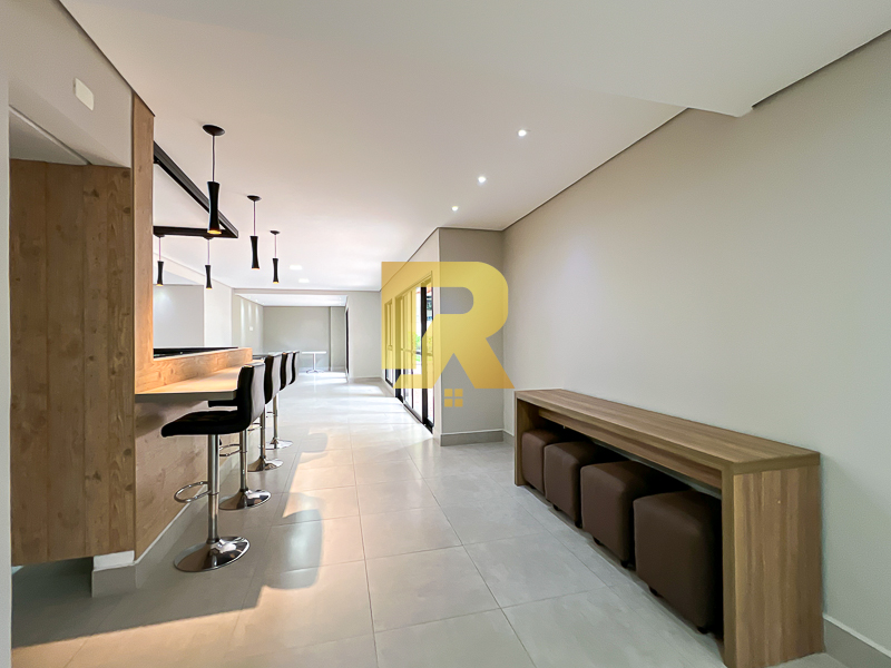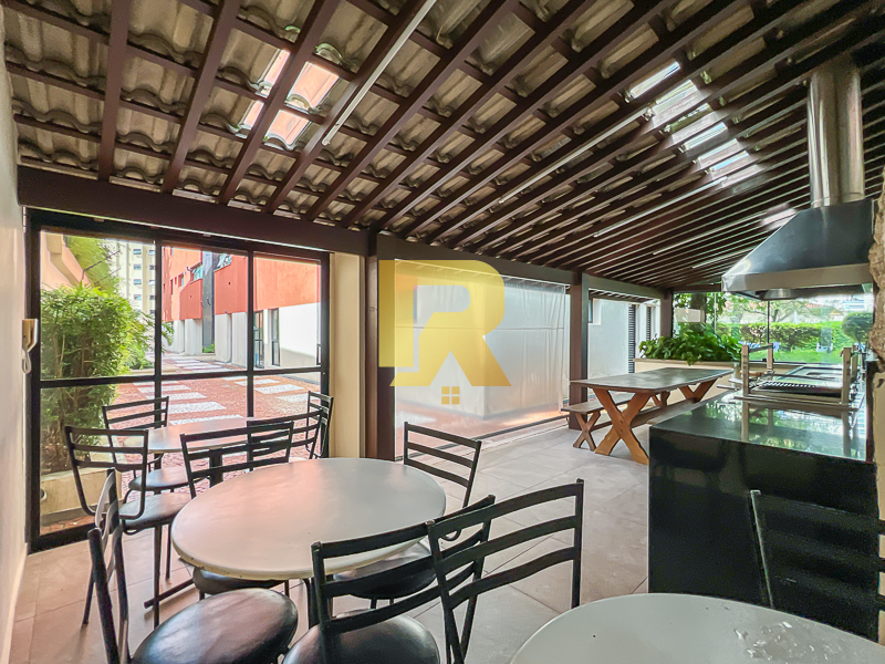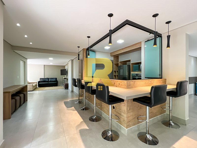 O condomínio tem churrasqueira, piscina aquecida, sauna, salão de festas, salão de jogos, academia e playground.