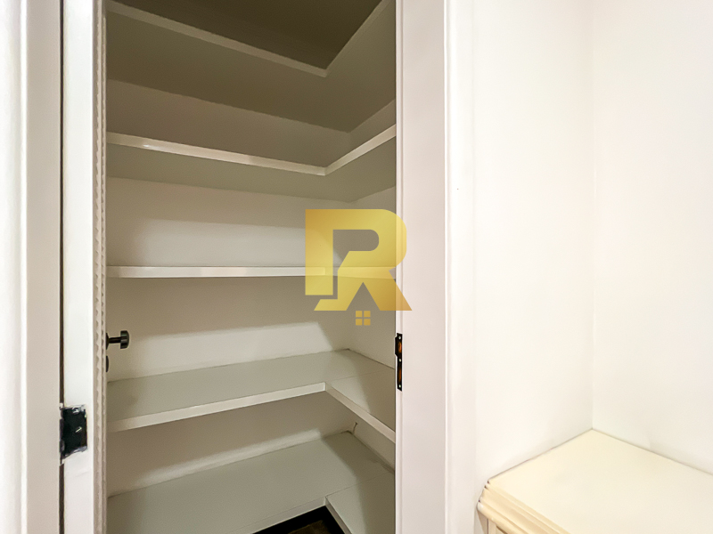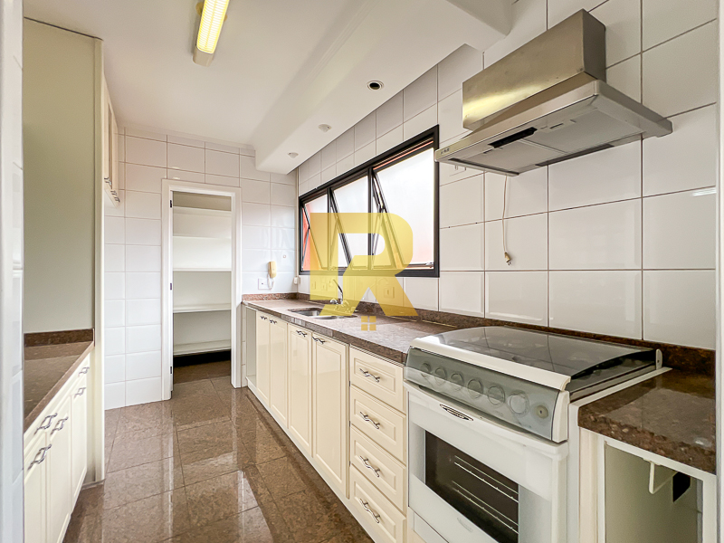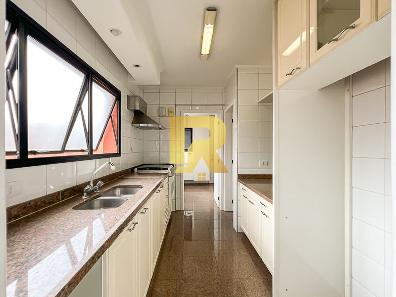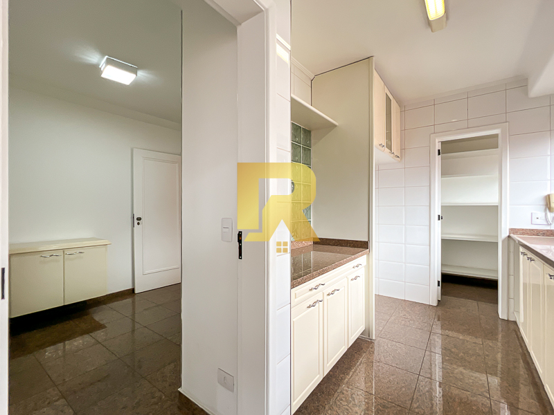 Copa para as refeições diárias integrada ao espaço de guarda-louças. Cozinha e despensa planejadas. A área de serviço bem montada com outro banheiro de serviço e um quarto para uma funcionária ou o que desejar.
