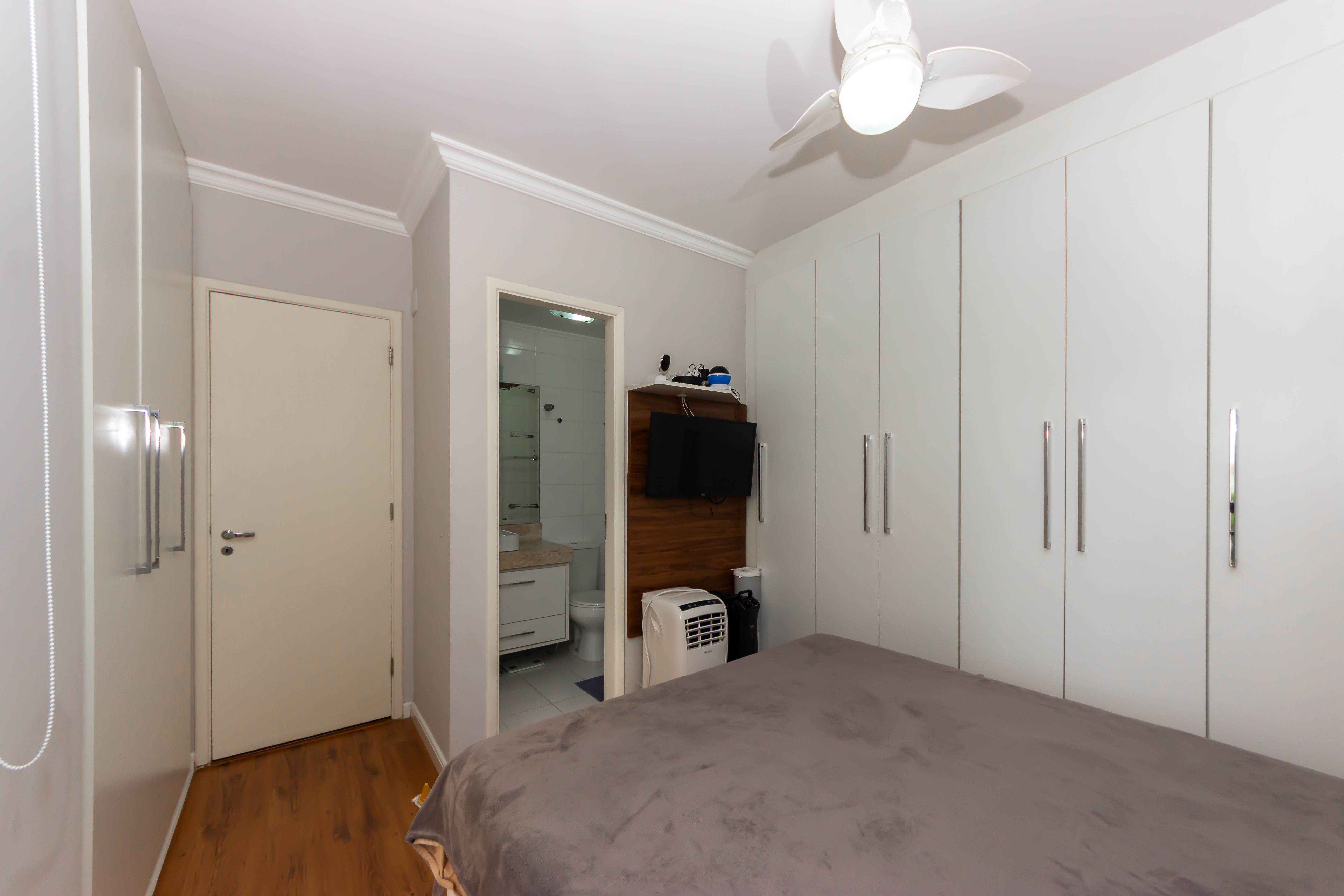 Na área íntima, são três dormitórios, sendo uma suíte master com sacada. Dois quartos contam com móveis planejados de excelente qualidade.
