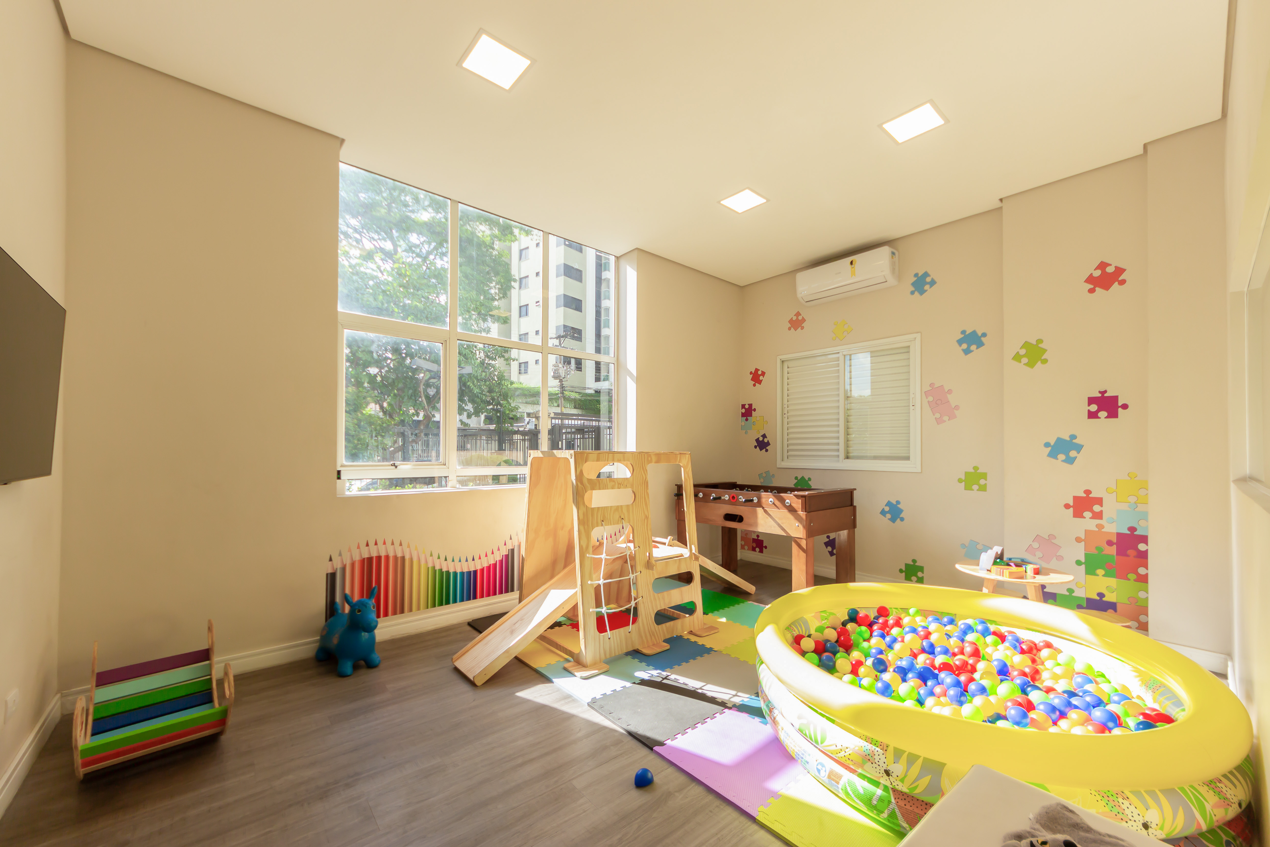 O condomínio oferece infraestrutura completa: espaço gourmet, piscina climatizada, salão de festas, brinquedoteca, academia, playground e portaria 24 horas.