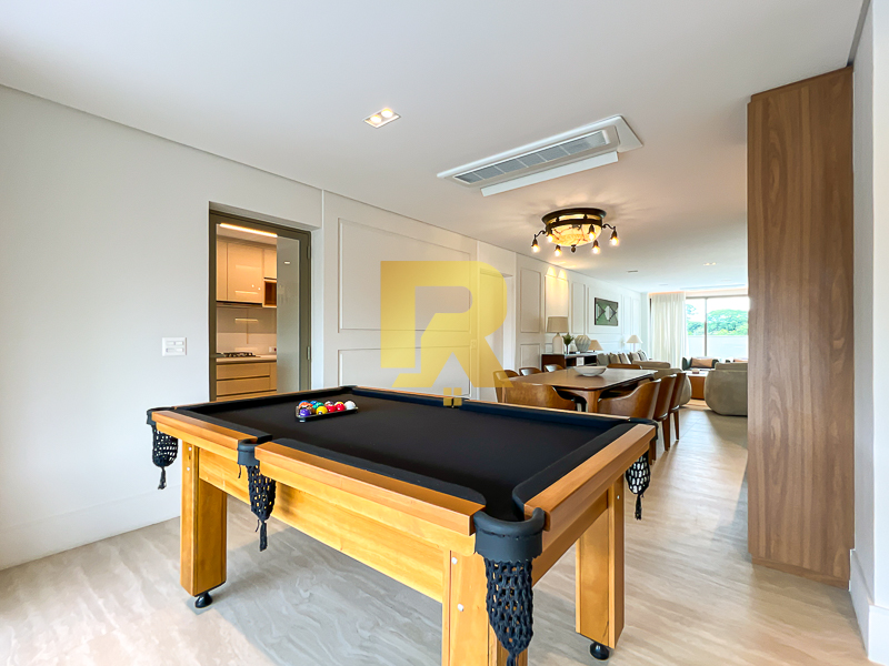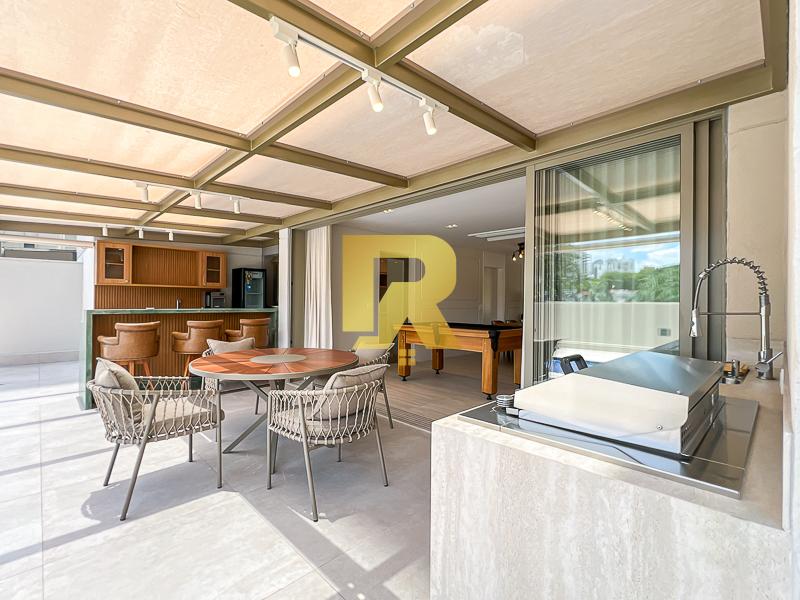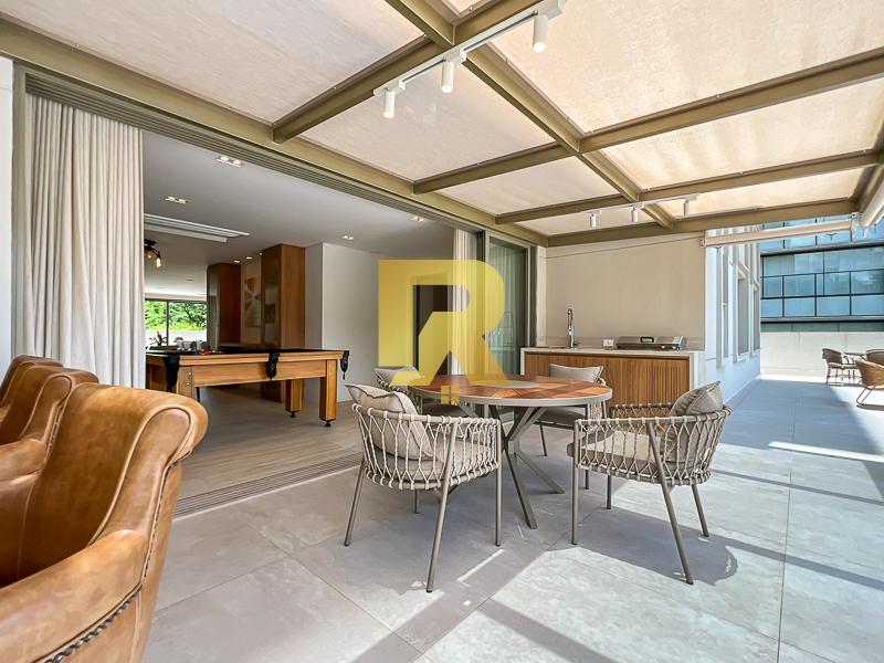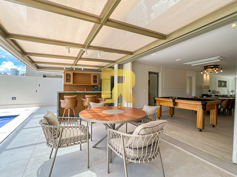 O grande diferencial deste Garden está em seu lazer privativo incomparável. O apartamento é completamente envolvido por varandas, criando uma ampla área externa contínua, perfeita para diferentes momentos. Nesse espaço exclusivo, encontram-se uma piscina privativa, espaço gourmet e um salão de jogos, compondo um verdadeiro clube particular dentro de casa — ideal para confraternizações com total conforto, privacidade e sofisticação.