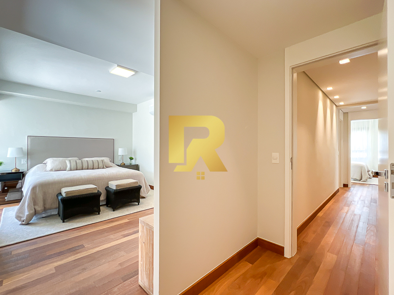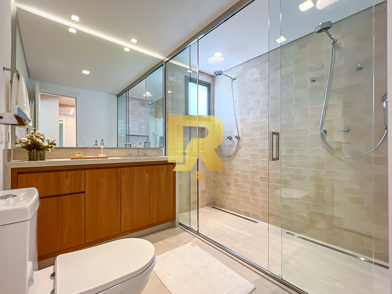 Na área íntima, o apartamento conta com três suítes amplas e extremamente confortáveis, todas projetadas para garantir privacidade e tranquilidade. A suíte master é um verdadeiro refúgio, com conceito diferenciado que inclui dois banheiros e dois closets independentes, oferecendo praticidade, conforto e exclusividade ao casal.