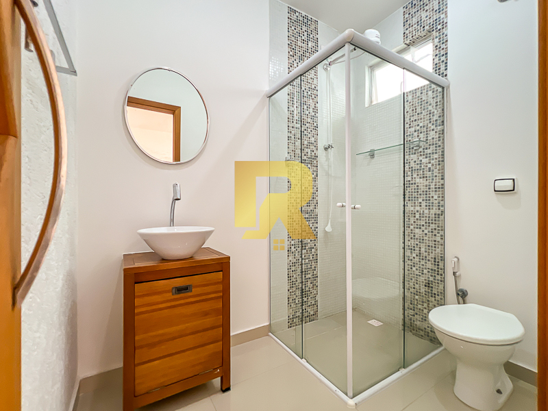 Ainda no piso inferior, uma sala íntima que pode ser facilmente transformada em um confortável home theater — o espaço ideal para momentos reservados com a família. A edícula completa, com sala, quarto e banheiro, oferece versatilidade para hóspedes ou escritório privativo. A lavanderia com banheiro e piso antiderrapante garante funcionalidade com segurança.