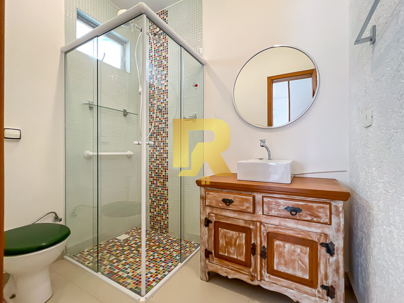 Todas as suítes possuem ar-condicionado e banheiros com gabinetes em madeira de demolição, mantendo o padrão de elegância em toda a casa.